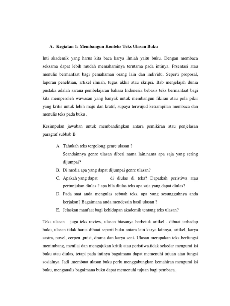 Manfaat teks ulasan sendiri dapat dirasakan oleh 3 kalangan yang berbeda: Manfaat.semoga dapat bermanfaat dan menambah ilmu pengetahuan anda. Teks ulasan atau resensi (inggris: Manfaat teks ulasan bagi pembaca dan penulis : Tujuan pembahasan biasanya ditulis secara singkat tetapi menggambarkan dan mendeskripsikan manfaat penelitian kepada pembaca. Teks ulasan merupakan kumpulan teks yang berisi tentang penilaian, ulasan, ataupun review terhadap suatu karya tertentu. • melatih seorang penulis untuk jeli melihat kelebihan dan kekurangan suatu karya. Teks ulasan tak hanya bermanfaat bagi si pembaca teks tetapi juga bagi si penulis dan pencipta karya yang dilulas. Bagi pembaca, manfaat yang diperoleh dari teks ulasan sebagai berikut: From quizizz.com karya yang dimaksud meliputi film, cerpen, puisi, novel dan karya seni daerah. Manfaat teks ulasan secara garis besar terbagi menjadi tiga point, berikut ini. Manfaat teks ulasan bagi pembaca dan penulis cara membuat abstrak karya ilmiah yang benar perhatikan. Apr 25, 2021 · 10.
